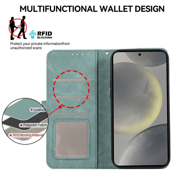 Funda de Cuero Abeel para Samsung Galaxy S21 Ultra 5G Color Block Magnética Rfid (Cian-Rosa)