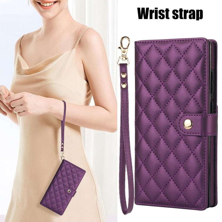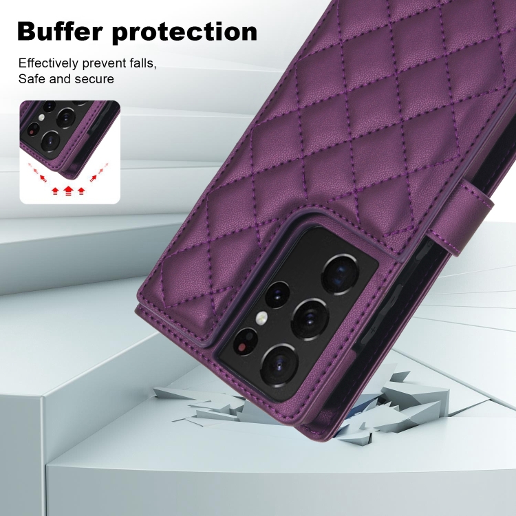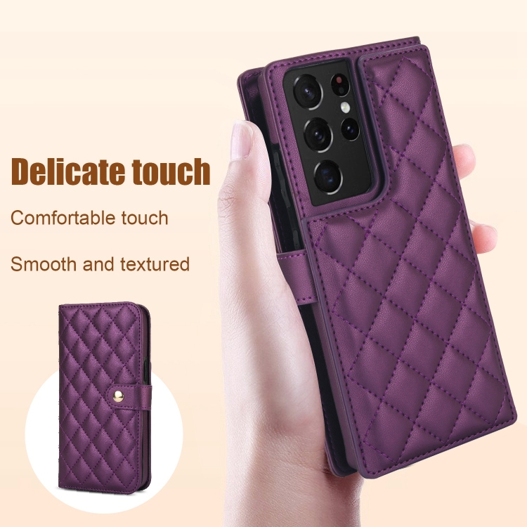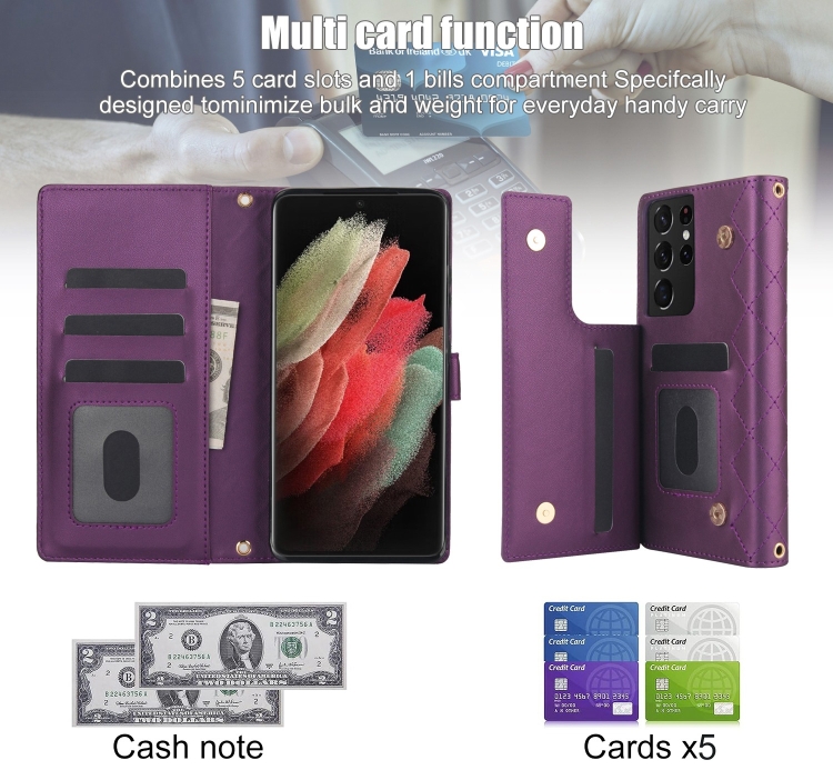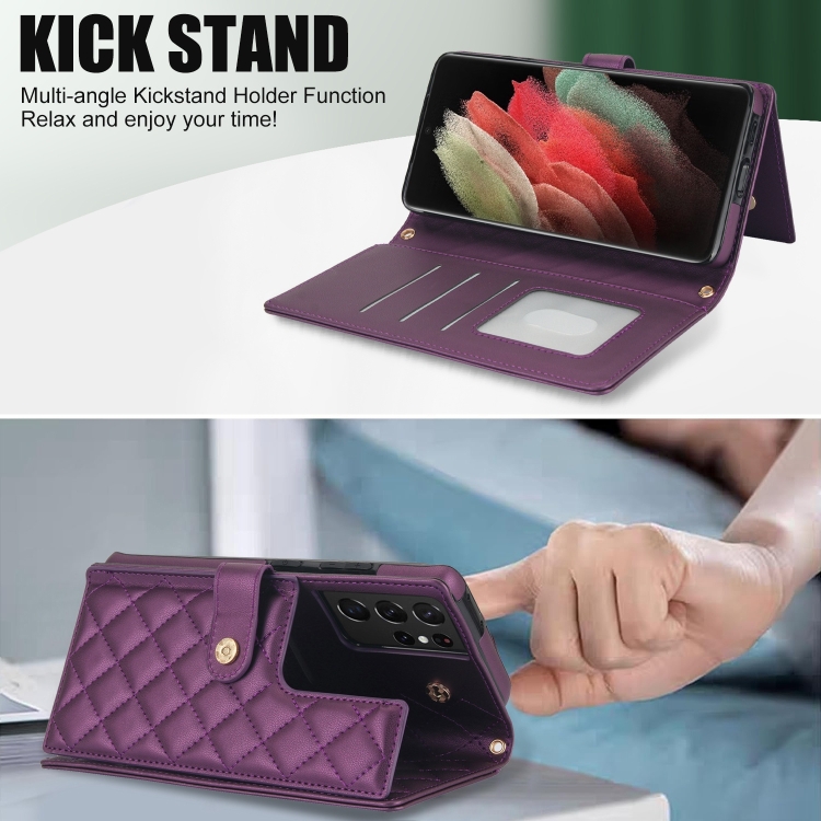Estuche para Teléfono Samsung Galaxy S21 Ultra 5G Crossbody Cuero Rómbico Multifunción (Púrpura Oscuro)