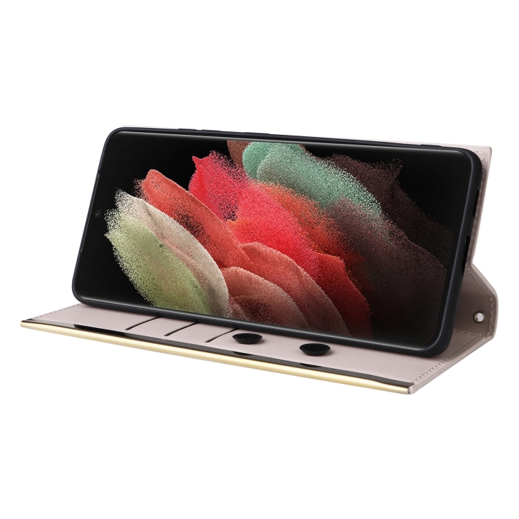 Estuche para teléfono Samsung Galaxy S21 Ultra 5G cuero con ventosa romboidal cruzada (Blanco)