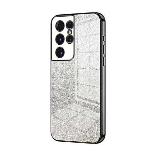Estuche para Teléfono Samsung Galaxy S21 Ultra 5G Galvanizado con Polvo de Brillo Degradado (Negro)