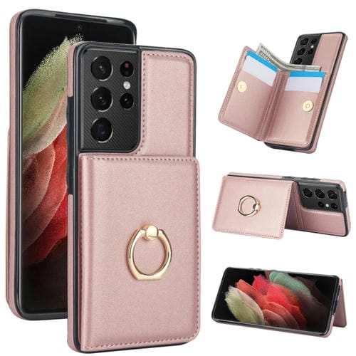 Estuche para teléfono Samsung Galaxy S21 Ultra 5G Rfid Tarjeta Antirrobo con Soporte para Anillo (Oro Rosa)