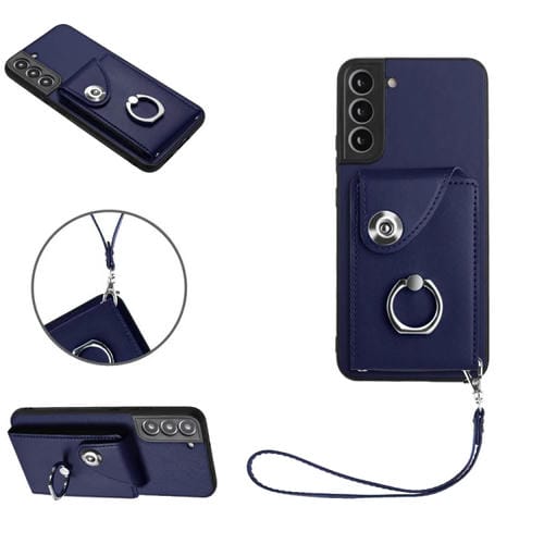 Funda para Teléfono Samsung Galaxy S22 + 5G Bolsa para Tarjeta Soporte Anillo y Cordón (Azul)