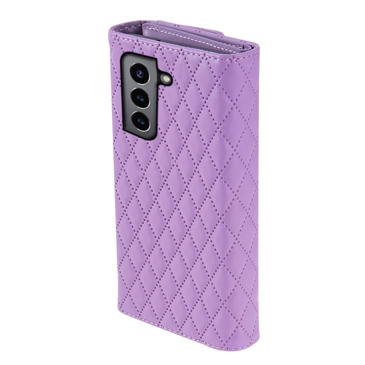 Estuche para Teléfono Samsung Galaxy S22 5G Cuero Rómbico con Billetera y Cremallera (Púrpura)