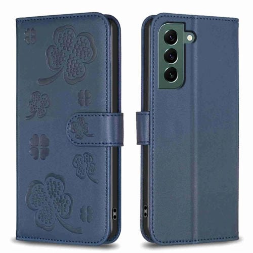 Funda de Cuero Samsung Galaxy S22+ 5G con Relieve de Cuatro Hojas (Azul)
