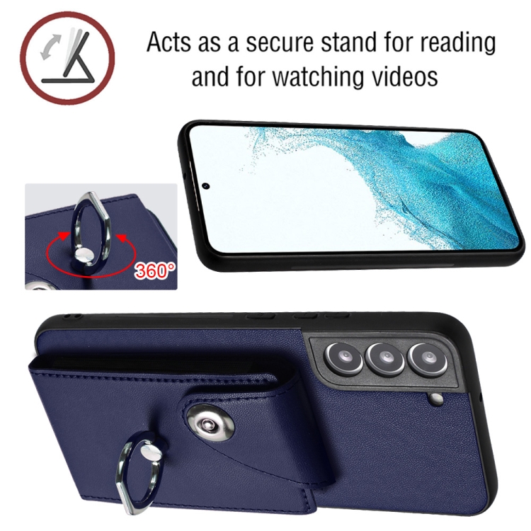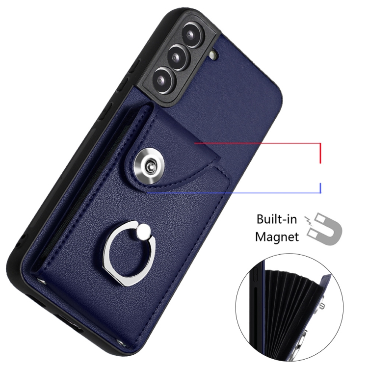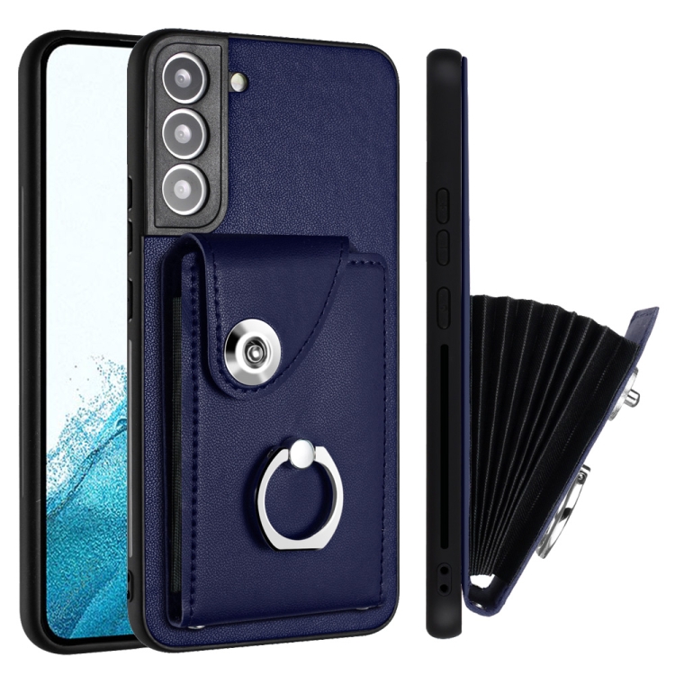 Funda para Teléfono Samsung Galaxy S22 + 5G de PU con Soporte para Anillo y Bolsa para Tarjeta (Azul)