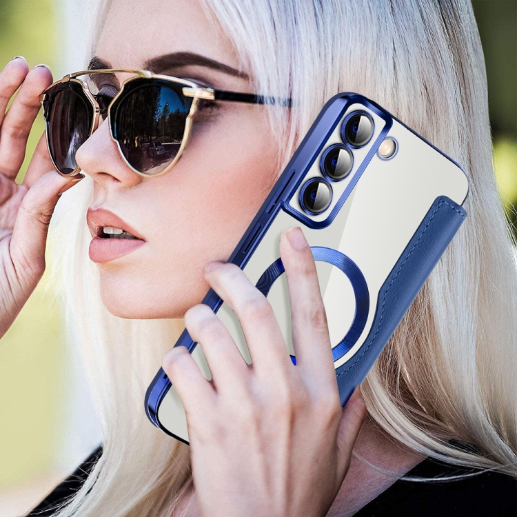 Funda para Samsung Galaxy S22 5G Magsafe Magnetic Rfid Cuero Antirrobo (Azul Oscuro)