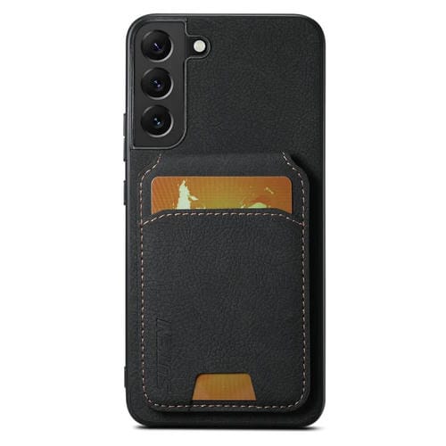 Funda para Teléfono Suteni H02 para Samsung Galaxy S22 + 5G con Soporte y Billetera de Cuero Litchi (Negro)