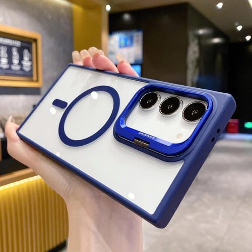 Estuche para Teléfono Samsung Galaxy S23 5G Magsafe Soporte Marco de Lente Metal (Azul)