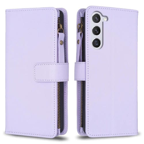 Estuche para Teléfono Samsung Galaxy S24 5G 9 Ranuras para Tarjetas Tapa de Cuero Billetera con Cremallera (Púrpura Claro)