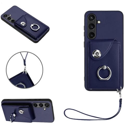 Bolsa para Tarjeta de Órgano Funda para Teléfono Samsung Galaxy S24 5G con Soporte para Anillo y Cordón (Azul)