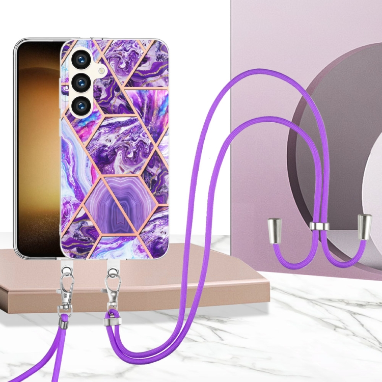 Estuche para teléfono Samsung Galaxy S24 5G TPU Mármol doble cara con cordón (Púrpura Oscuro)