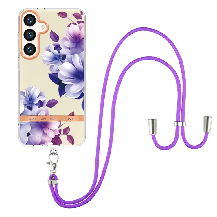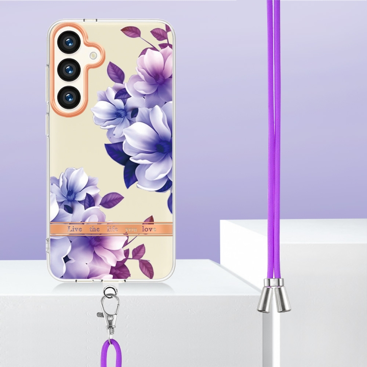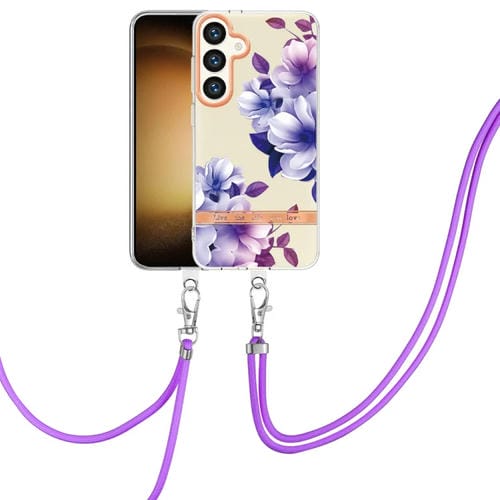 Estuche para Teléfono Samsung Galaxy S24 5G Serie Flores y Plantas Imd TPU con Cordón (Begonia Púrpura)