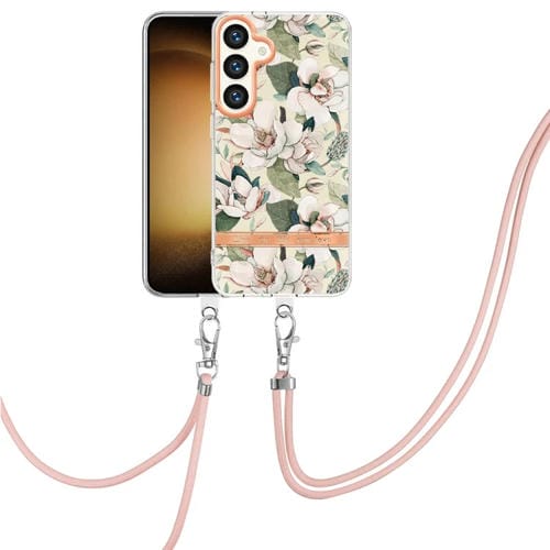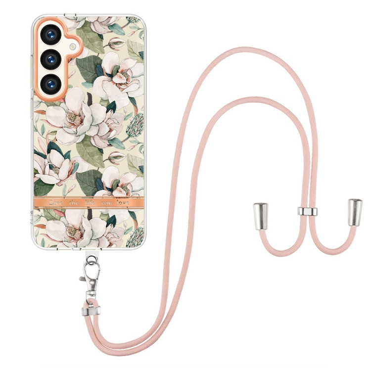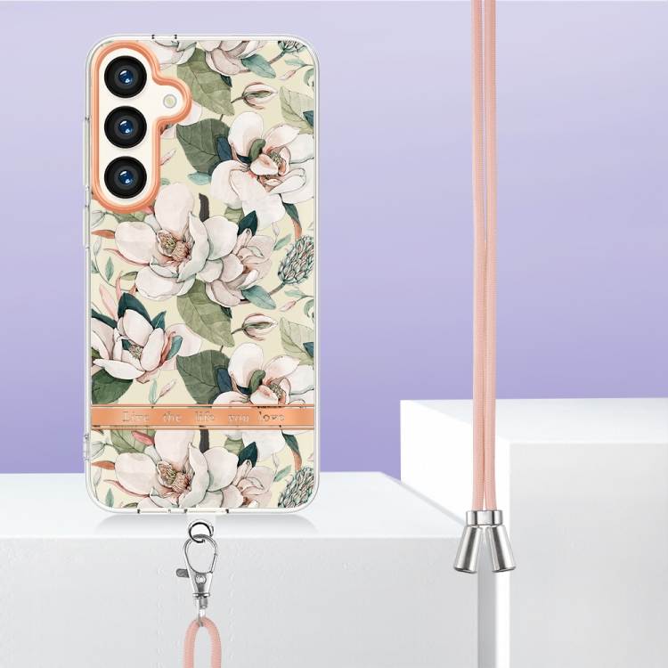 Estuche para Teléfono Samsung Galaxy S24 5G Serie Flores y Plantas Imd TPU con Cordón (Gardenia Verde)