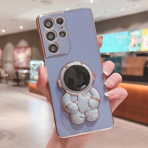 Estuche para Teléfono Samsung Galaxy S24 Ultra 5G Embrace Stars con Soporte Astronauta Galvanizado (Azul)