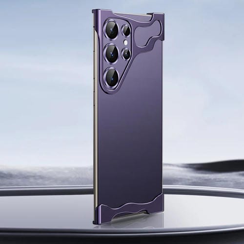 Estuche para teléfono Samsung Galaxy S24 Ultra 5G con Almohadilla de Esquina de Metal sin Marco y Película para Lentes (Púrpura)