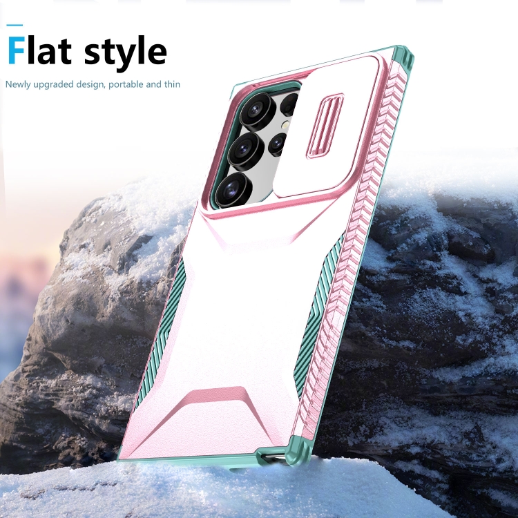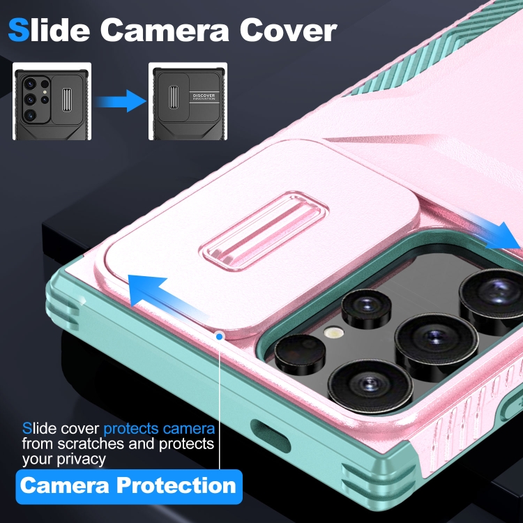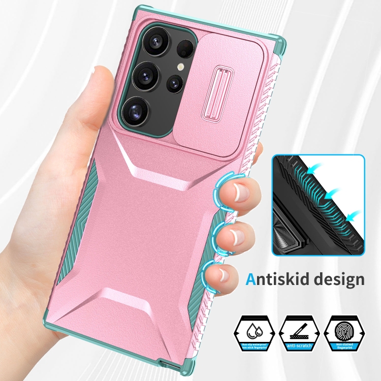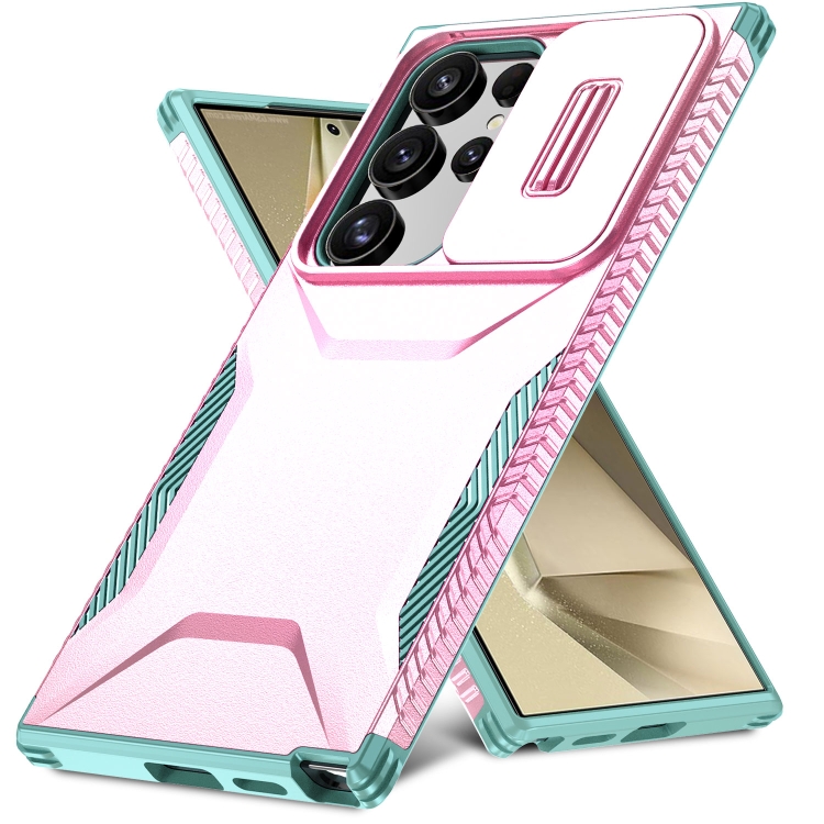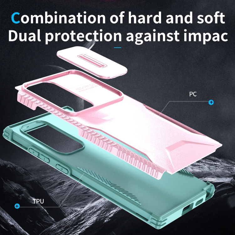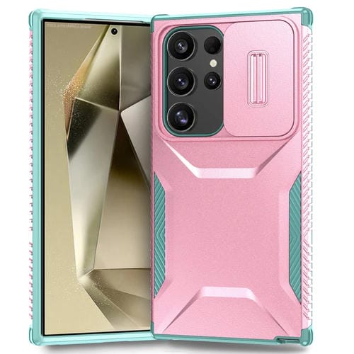 Estuche para Teléfono Samsung Galaxy S24 Ultra 5G con Escudo Deslizante (Rosa + Gris Verde)