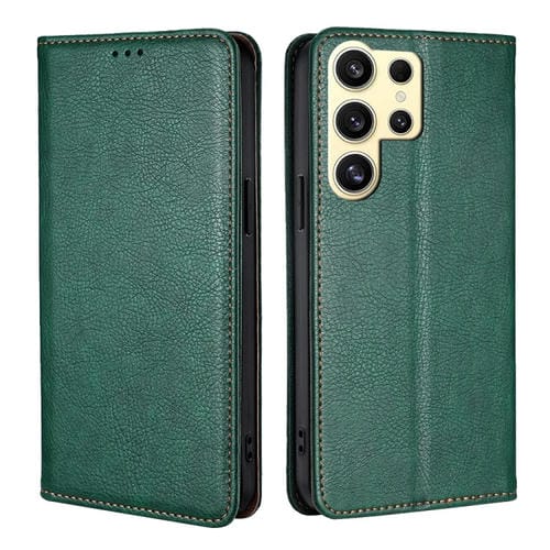 Estuche para teléfono Samsung Galaxy S24 Ultra 5G Cuero Magnético Color Sólido Aceite Brillante (Verde)