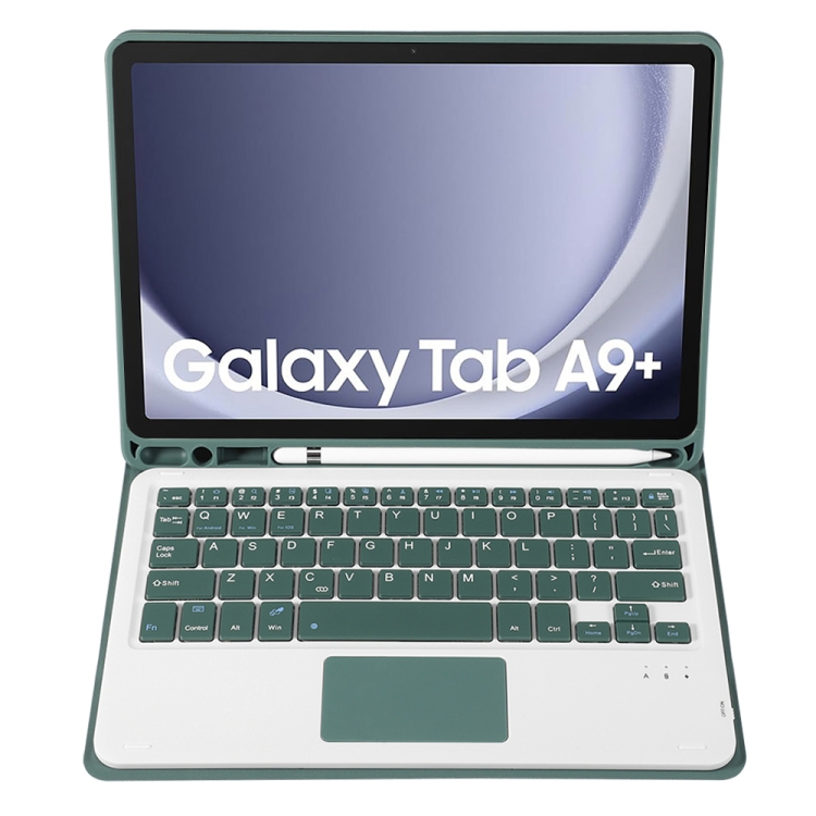 - 1x Funda con Teclado Bluetooth + Soporte Bolígrafo para Samsung Galaxy Tab A9 X210/X215 (Verde Oscuro)