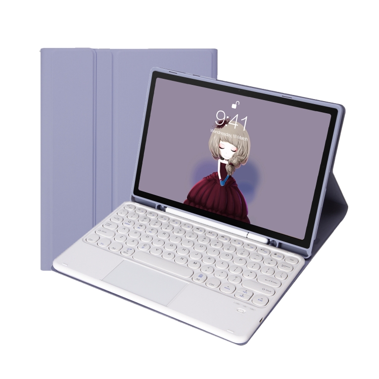 - 1x Funda de Cuero con Teclado Bluetooth para Samsung Galaxy Tab A9 + X210/X215 TPU (Caramelo) (Púrpura)