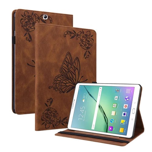 Funda para Tablet Samsung Galaxy Tab S2 9.7 T810 T815 Cuero Relieve Flor Mariposa (Marrón)