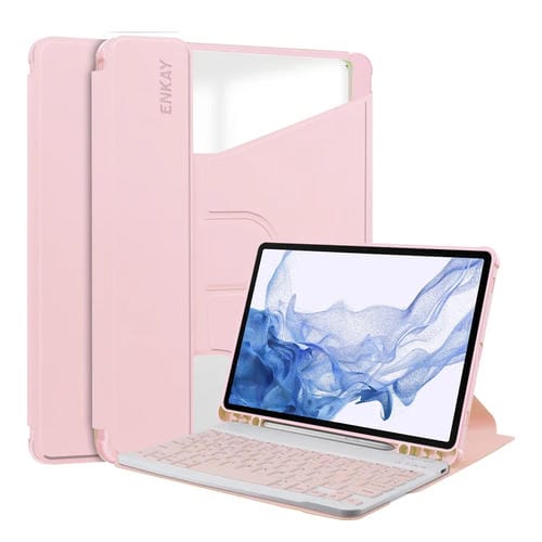 Estuche inteligente para Samsung Galaxy Tab S9 Enkay TPU Cuero Rotación 360 grados Teclado inalámbrico (Rosa)
