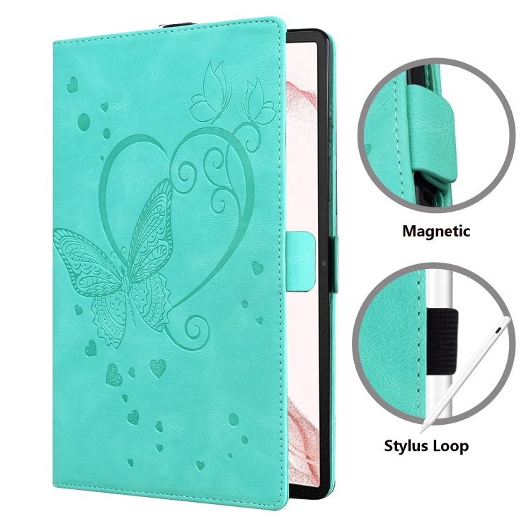 Funda para Tablet Samsung Galaxy Tab S9 FE Cuero con Relieve Love Butterfly (Verde Menta)