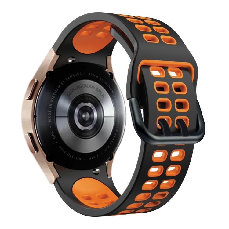 Banda de Reloj silicona para Samsung Galaxy Watch 4 40mm 20mm dos colores transpirable (Negro + Naranja)