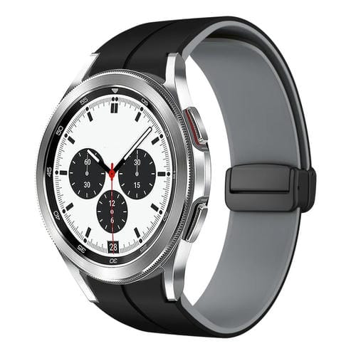 Correa de Silicona para Samsung Galaxy Watch 4 Classic 42mm con Hebilla Plegable Magnética (Negro + Gris)