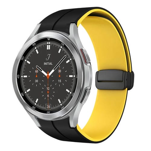 Correa de Silicona para Samsung Galaxy Watch 4 Classic 46mm con Hebilla Plegable Magnética (Negro + Amarillo)