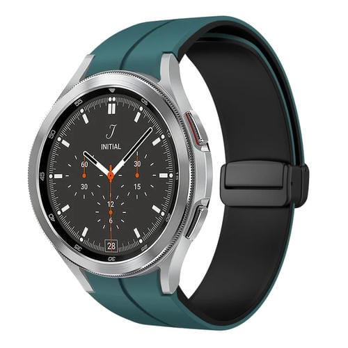 Correa de Silicona para Samsung Galaxy Watch 4 Classic 46mm con Hebilla Plegable Magnética (Verde + Negro)