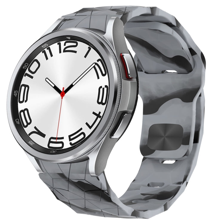 Correa de Silicona para Samsung Galaxy Watch 6 Classic 47mm con Hebilla Inversa y Textura de Fútbol (Gris Camuflaje)