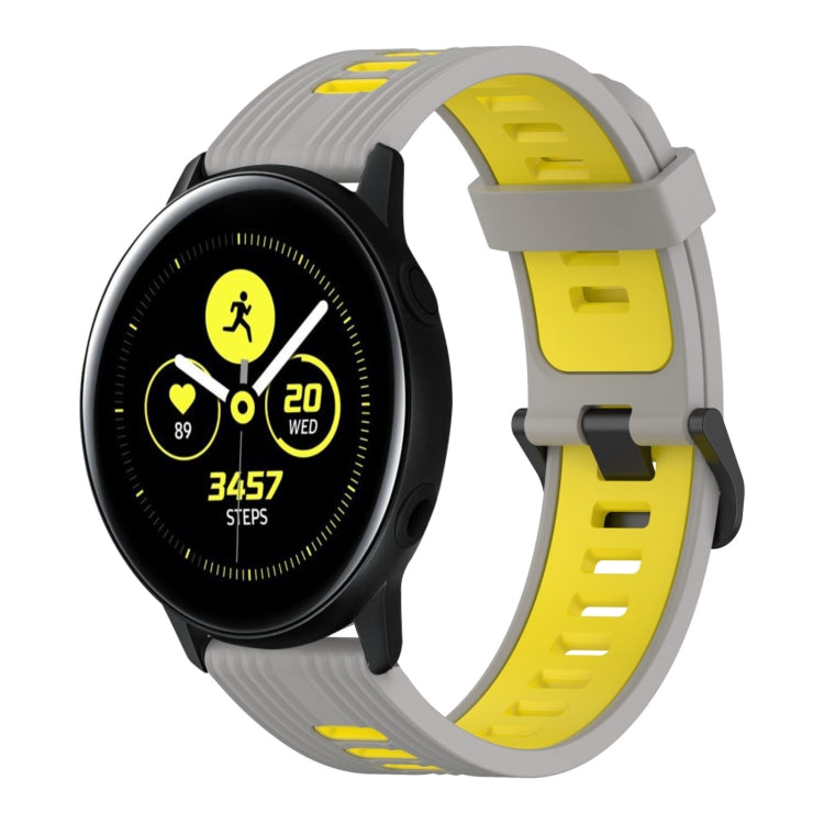 Banda de Reloj silicona para Samsung Galaxy Watch Active 40mm 20mm patrón vertical dos colores (Gris+Amarillo)