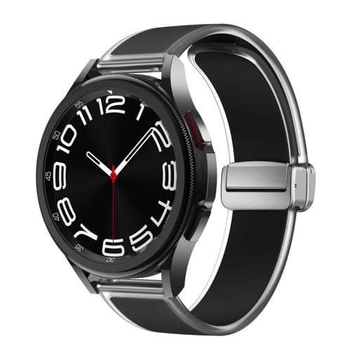 Correa de Silicona para Samsung Galaxy Watch6/5/4 con Hebilla Plateada Magnética Translúcida (Negro)
