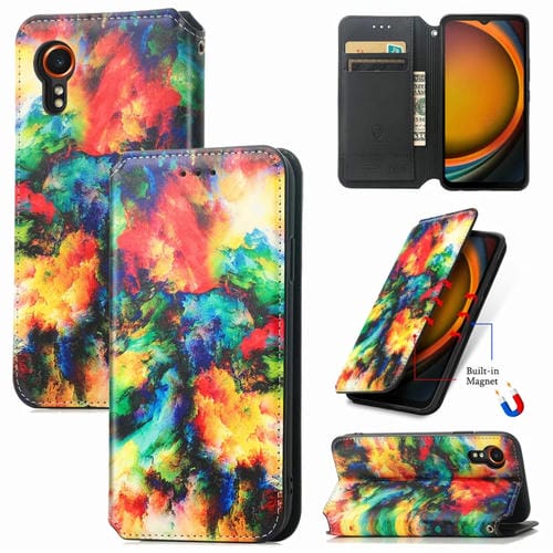 Funda de Cuero Magnética Caseneo para Samsung Galaxy Xcover 7 (Nube Colorida)