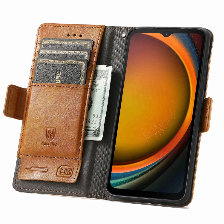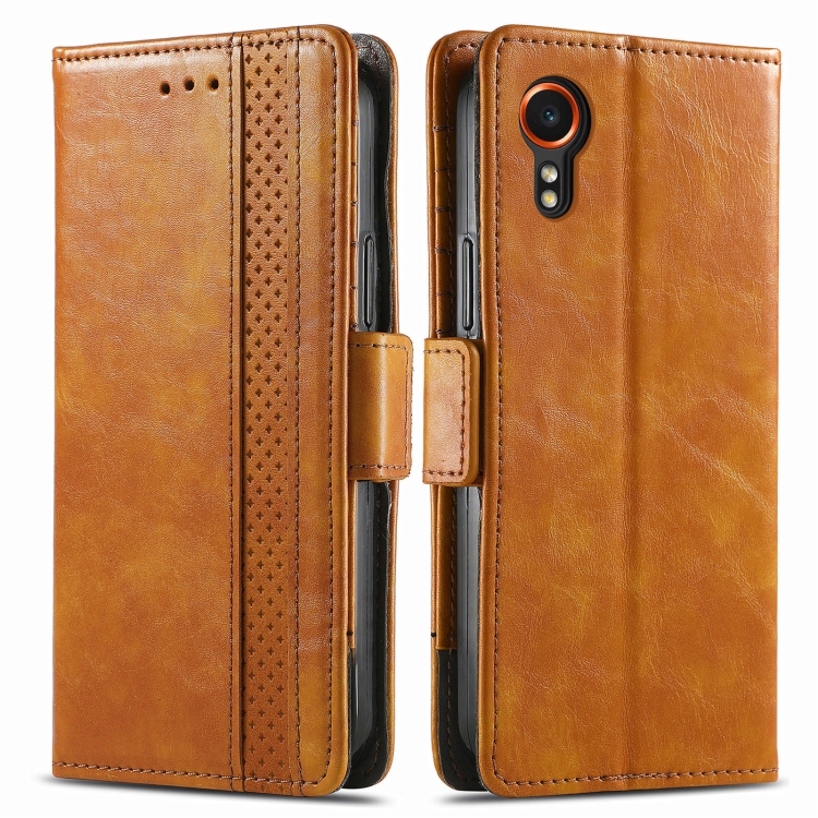 Funda de Cuero Caseneo para Samsung Galaxy Xcover 7 con Hebilla Magnética Dual (Caqui)