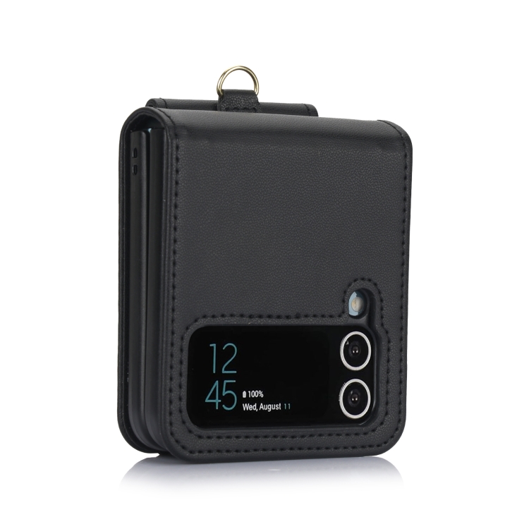 Estuche plegable Samsung Galaxy Z Flip3 con ranuras para tarjetas y cordón largo (Negro)