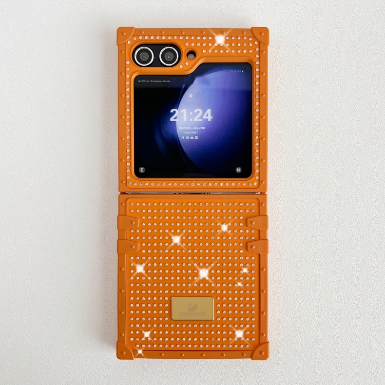 Estuche para Teléfono Samsung Galaxy Z Flip4 5G PC a Prueba de Golpes con Diamantes Completos y Logotipo de Cisne (Naranja)