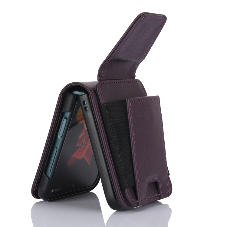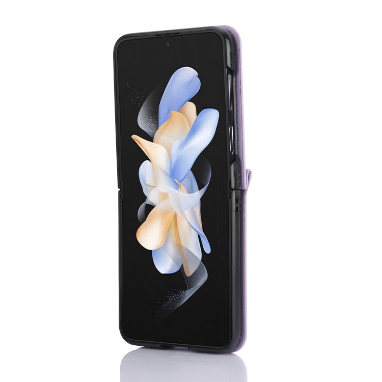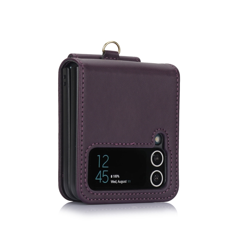 Estuche plegable Samsung Galaxy Z Flip4 con ranuras para tarjetas y cordón largo (Púrpura Oscuro)