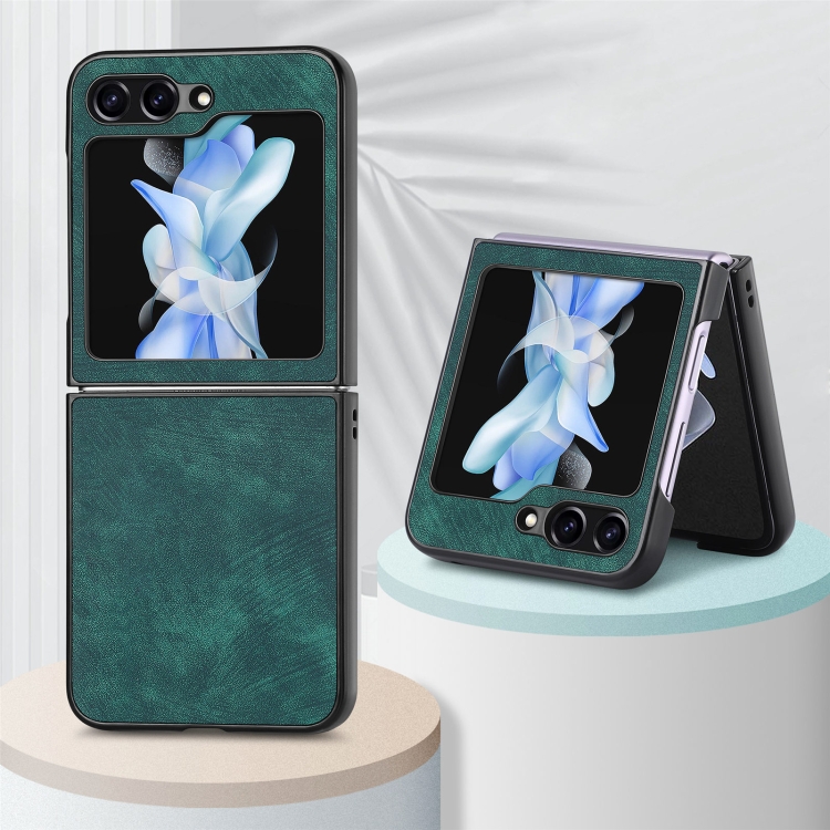 Funda de Teléfono Samsung Galaxy Z Flip5 5G Cuero Retro a Prueba de Golpes (Verde)