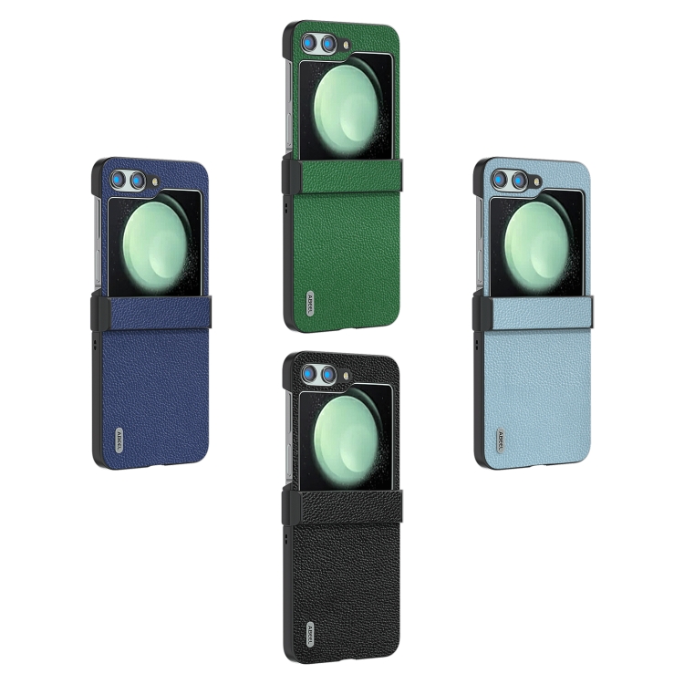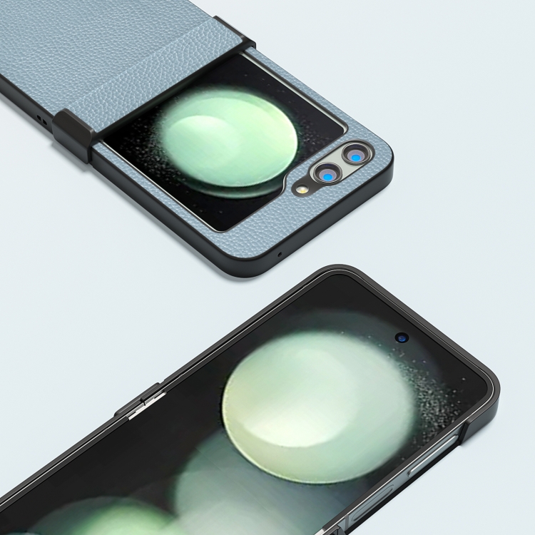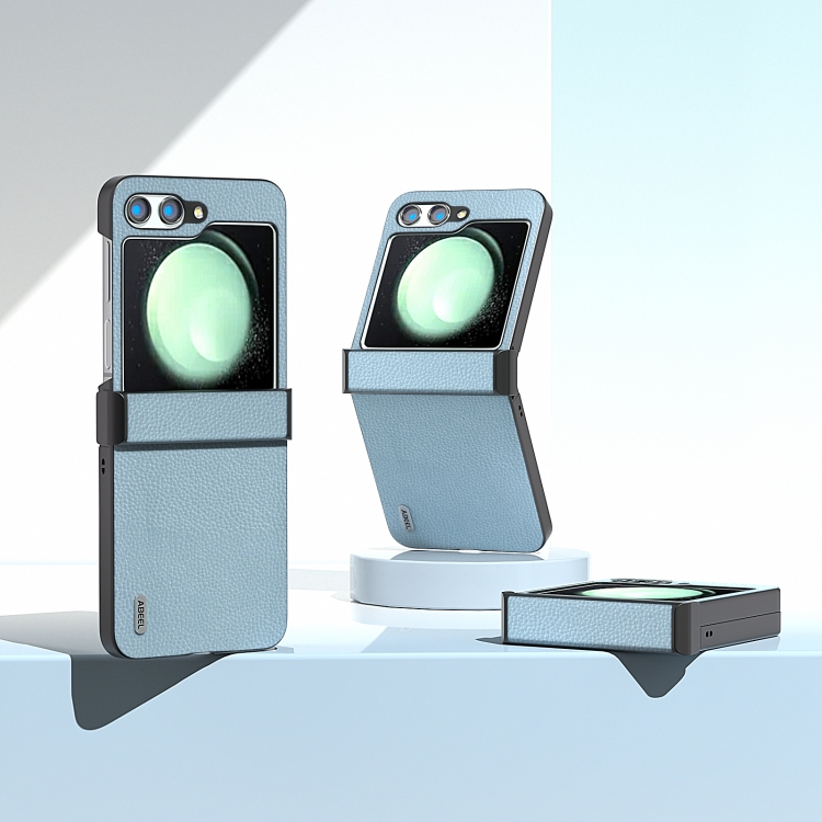 Funda para Teléfono Samsung Galaxy Z Flip5 Abeel Hinge Black Edge Cuero Genuino (Azul)