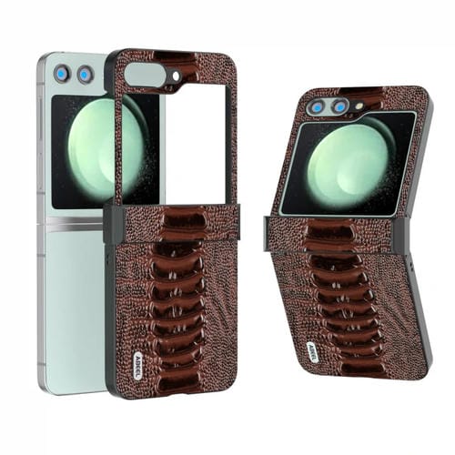 Funda para Teléfono Samsung Galaxy Z Flip5 Abeel Hinge Serie Weilai de Cuero Genuino (Café)