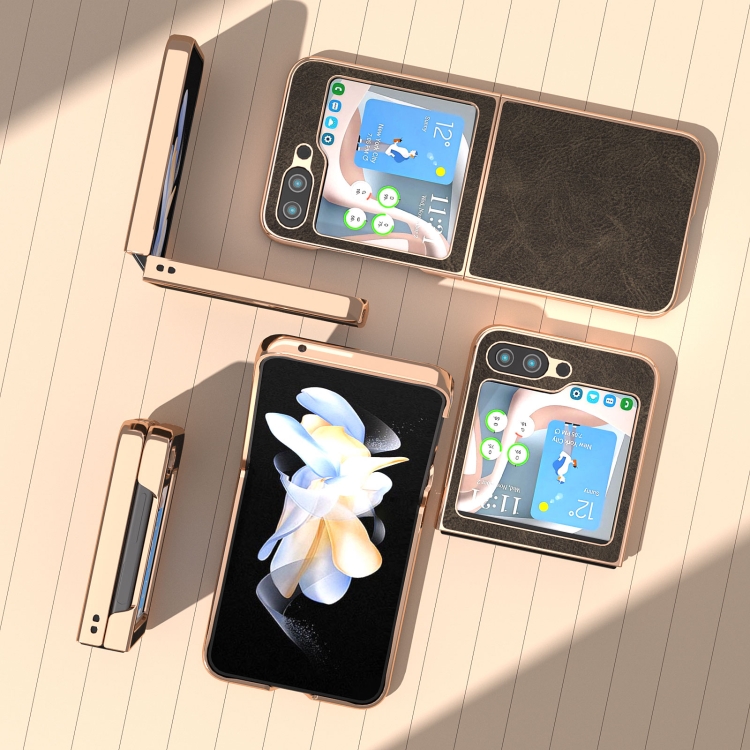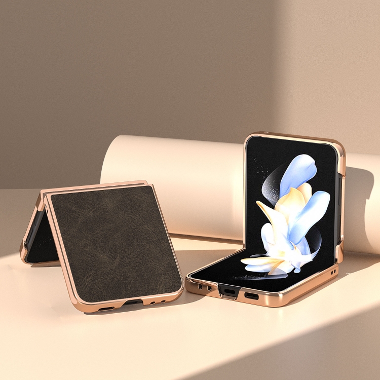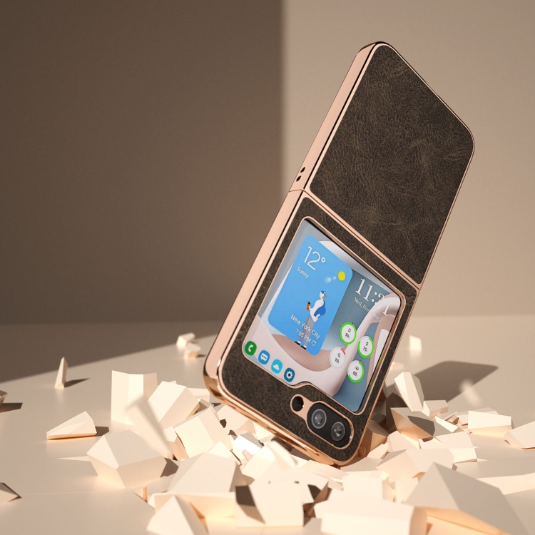Funda para Samsung Galaxy Z Flip5 Nano Plating Dream Textura Litchi PU (Caqui)