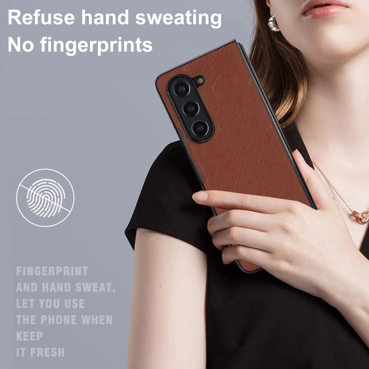 Estuche plegable para Samsung Galaxy Z Fold5 5G con patrón cruzado (Marrón)
