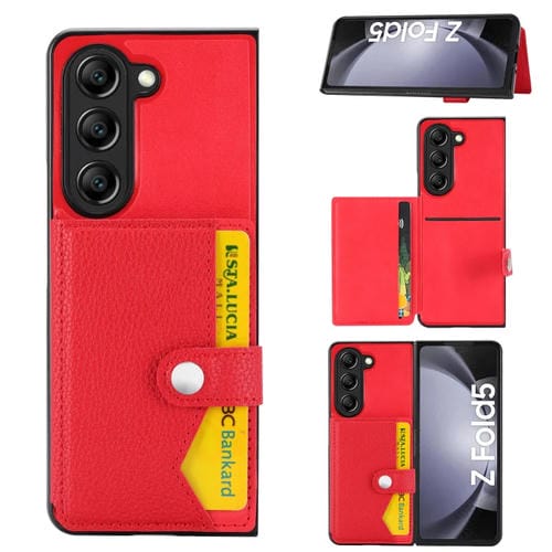 Funda para Teléfono Samsung Galaxy Z Fold5 Litchi Pattern con Tarjetero de Un Solo Botón (Rojo)