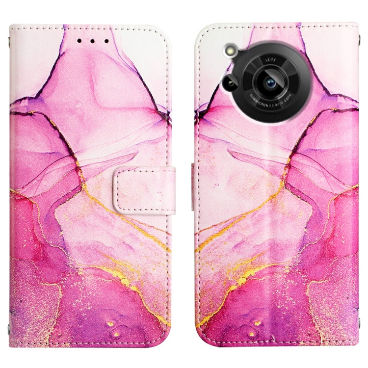 Funda de Teléfono Sharp Aquos R7/P7 Pt003 con Tapa de Cuero y Diseño Mármol (Rosa Púrpura Dorado)