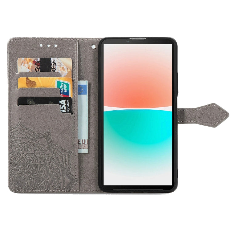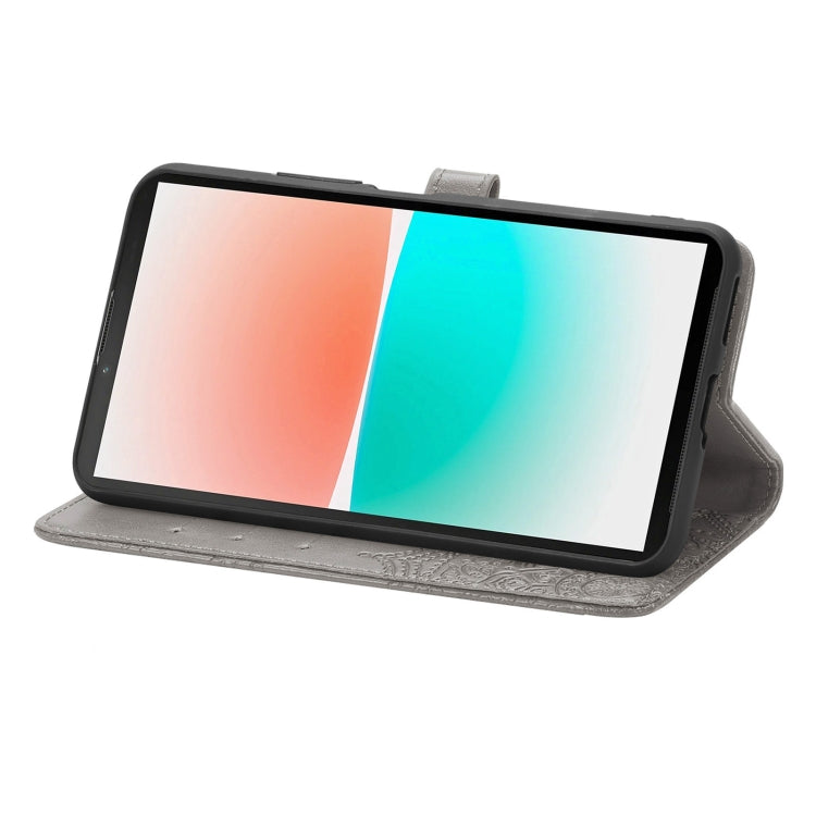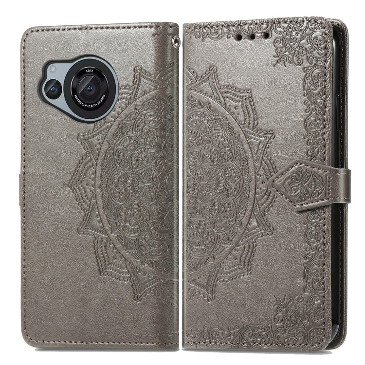 Funda de Cuero para Sharp Aquos R8 Mandala Flower en Relieve para Teléfono (Gris)