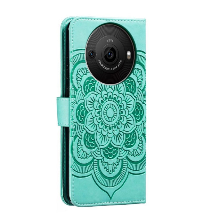Funda de Cuero para Sharp Aquos R8 Pro con Patrón Sun Mandala en Relieve (Verde)