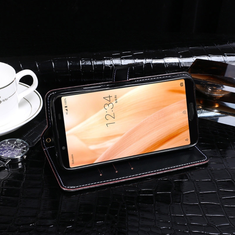 Funda de Cuero para Sharp Aquos Sense3 Lite Idewei con Tapa Horizontal, Textura Cocodrilo, Soporte y Ranuras para Tarjetas (Negro)