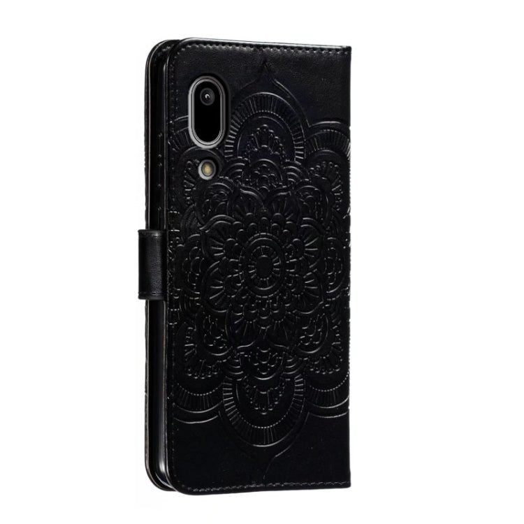 Funda de Cuero para Sharp Aquos Sense3 con Patrón en Relieve Sun Mandala (Negro)