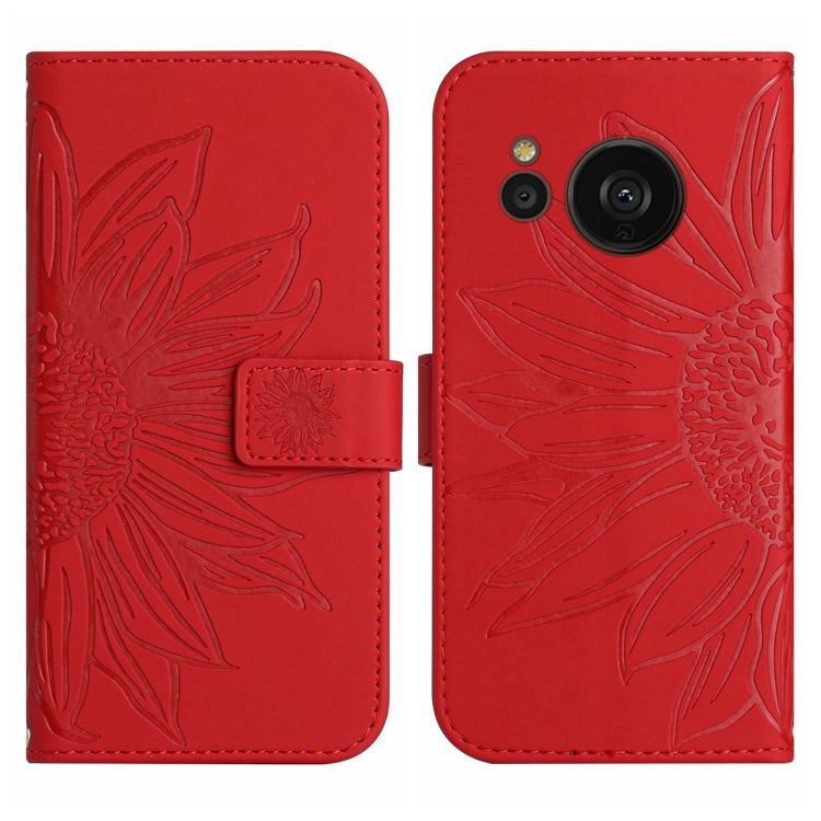 Funda Flip de Cuero para Sharp Aquos Sense7 Sh-V48 Ht04 con Cordón y Patrón Sun Flower (Rojo)
